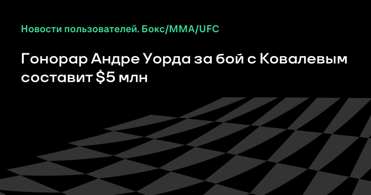 Экс-чемпион мира во втором среднем весе 32-летний американец Андре Уорд получит за бой с чемпионом по трем версиям в полутяжелом весе россияином Сергеем Ковалевым гарантированный гонорар в размере пяти миллионов долларов.