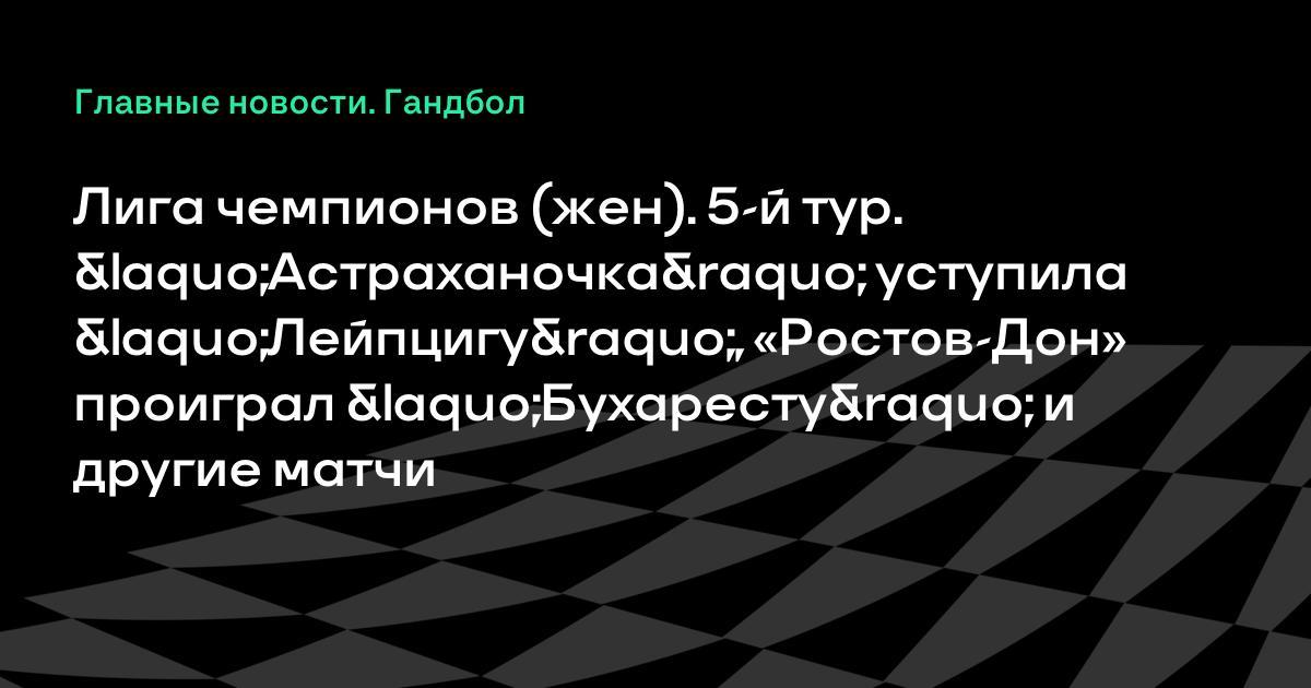 11-13 ноября состоялись матчи 5-го тура женской гандбольной Лиги чемпионов. «Ростов-Дон» проиграл румынскому «Бухаресту» (20:22), «Астраханочка» уступила немецкому «Лейпцигу» (27:30).