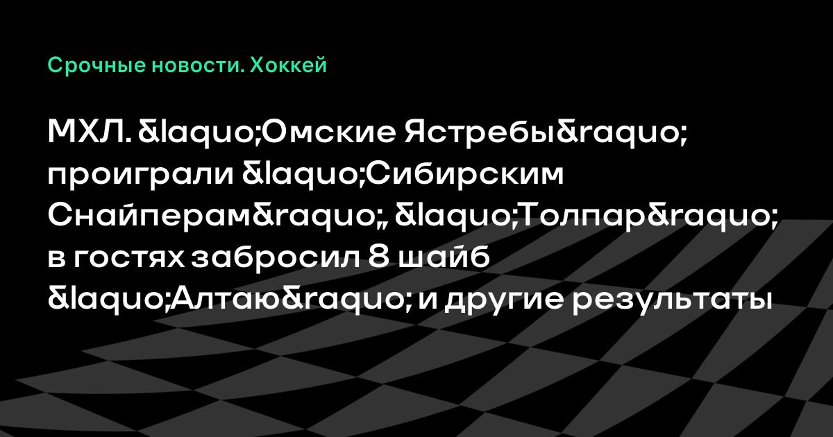МХЛ. «Омские Ястребы» проиграли «Сибирским Снайперам», «Толпар» в гостях забросил 8 шайб «Алтаю» и другие результаты