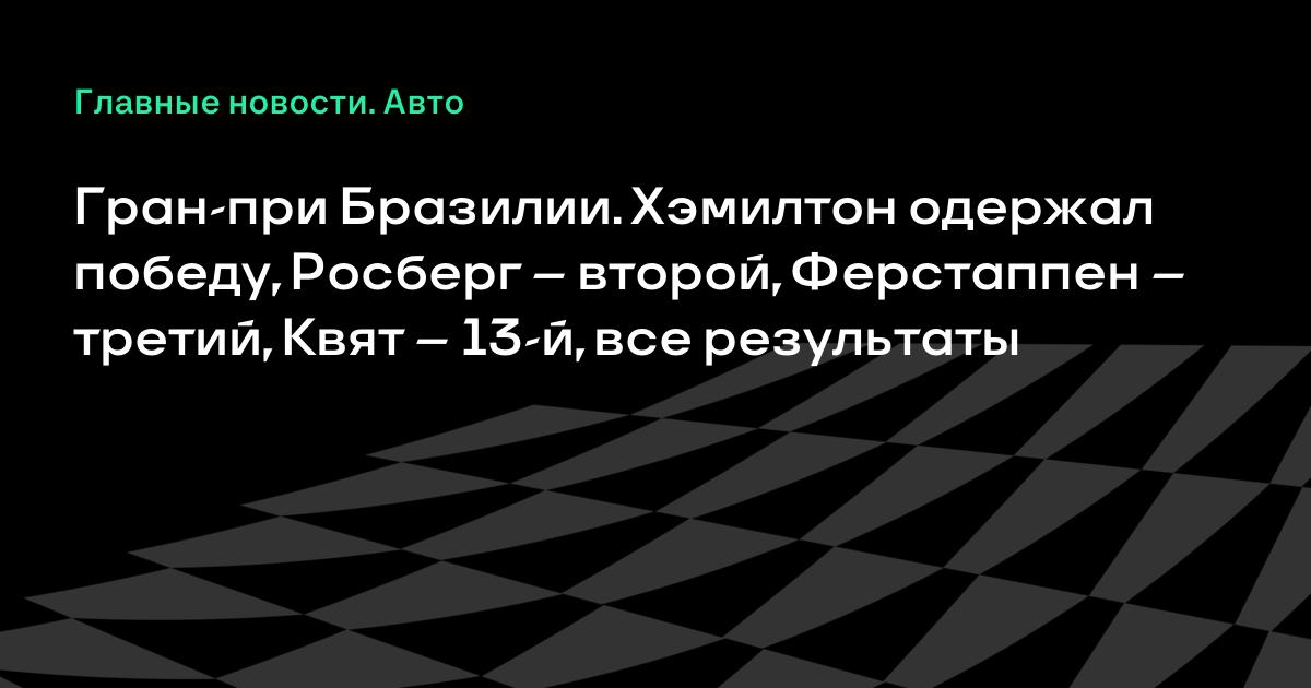Гран-при Бразилии. Хэмилтон одержал победу, Росберг – второй, Ферстаппен – третий, Квят – 13-й, все результаты