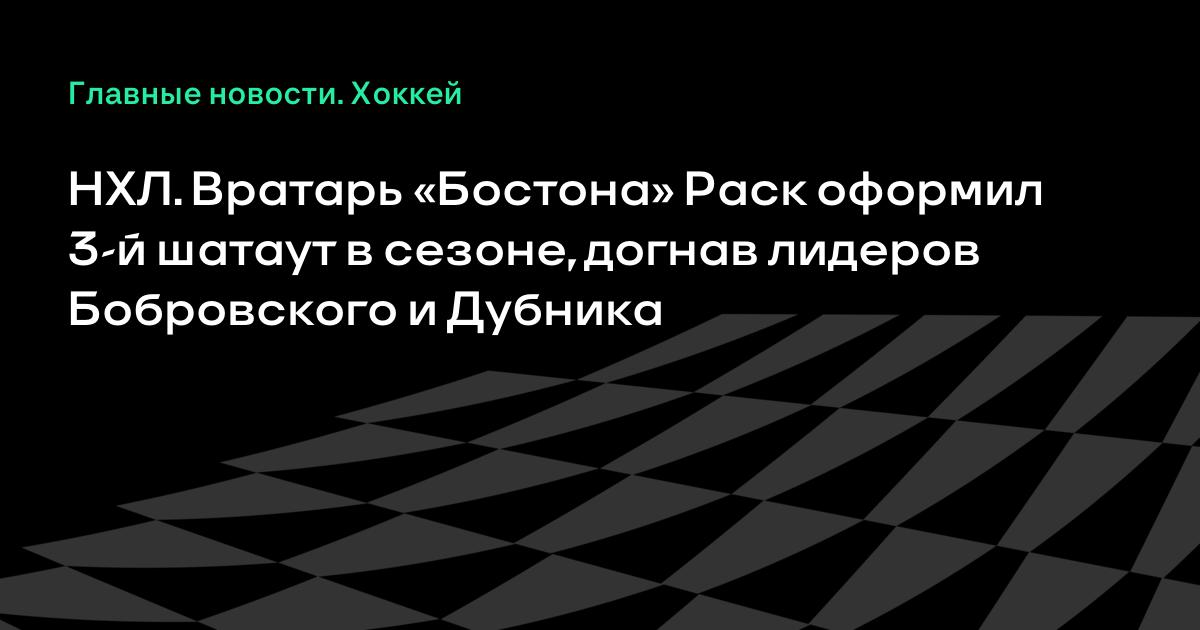 НХЛ. Вратарь «Бостона» Раск оформил 3-й шатаут в сезоне, догнав лидеров Бобровского и Дубника