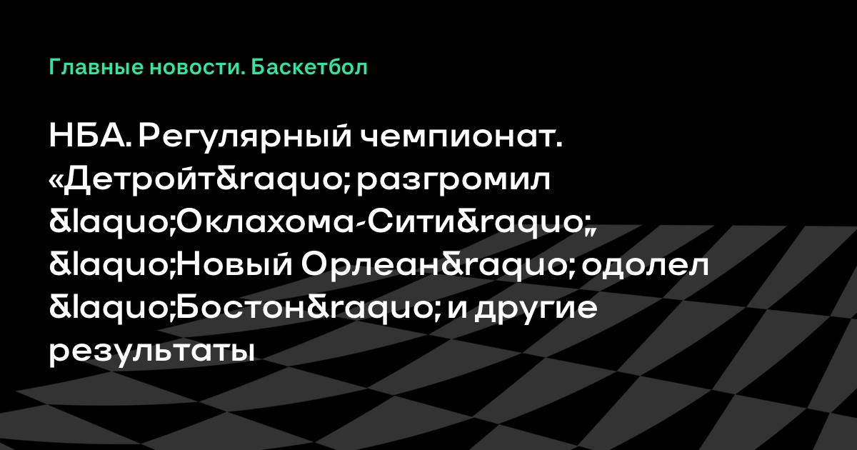 Сегодня в регулярном чемпионате НБА «Детройт» без травмированного Андре Драммонда разгромил «Оклахома-Сити», «Новый Орлеан» одержал вторую победу в сезоне, одолев «Бостон».