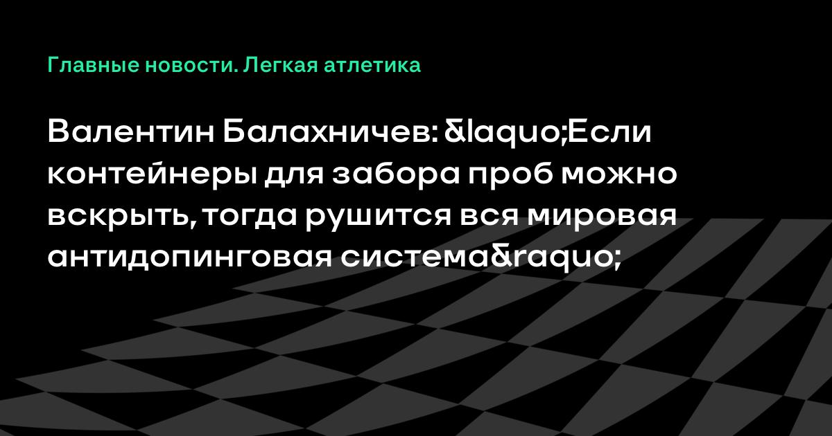 Валентин Балахничев: «Если контейнеры для забора проб можно вскрыть, тогда рушится вся мировая антидопинговая система»