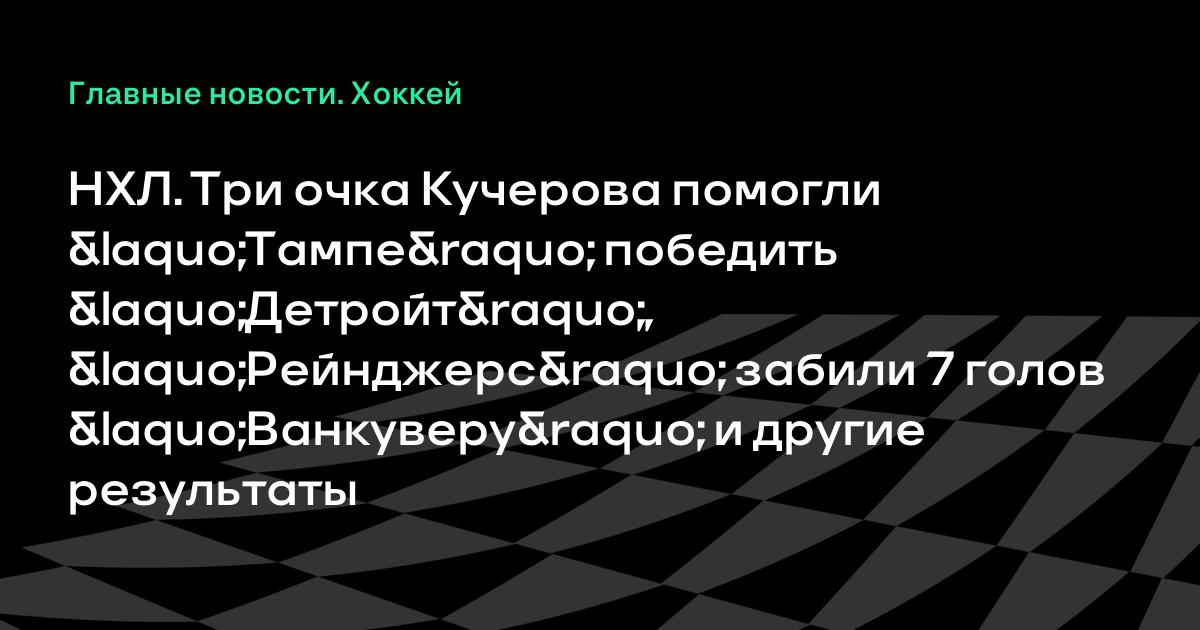 НХЛ. Три очка Кучерова помогли «Тампе» победить «Детройт», «Рейнджерс» забили 7 голов «Ванкуверу» и другие результаты