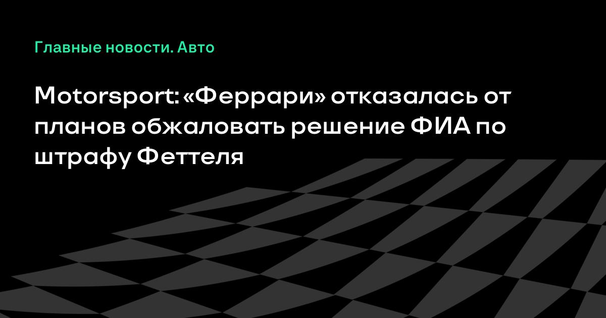 Motorsport: «Феррари» отказалась от планов обжаловать решение ФИА по штрафу Феттеля