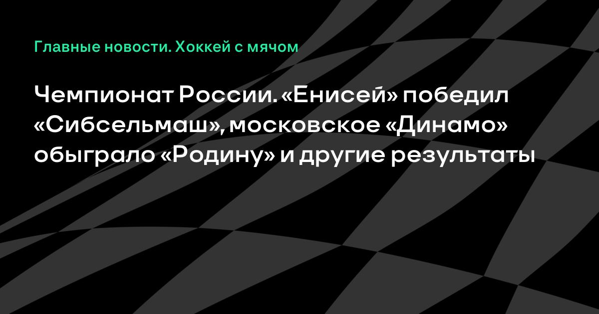 Сегодня состоялись матчи чемпионата России по хоккею с мячом. Московское «Динамо» обыграло «Родину» (4:3), «Енисей» победил «Сибсельмаш» (7:3).