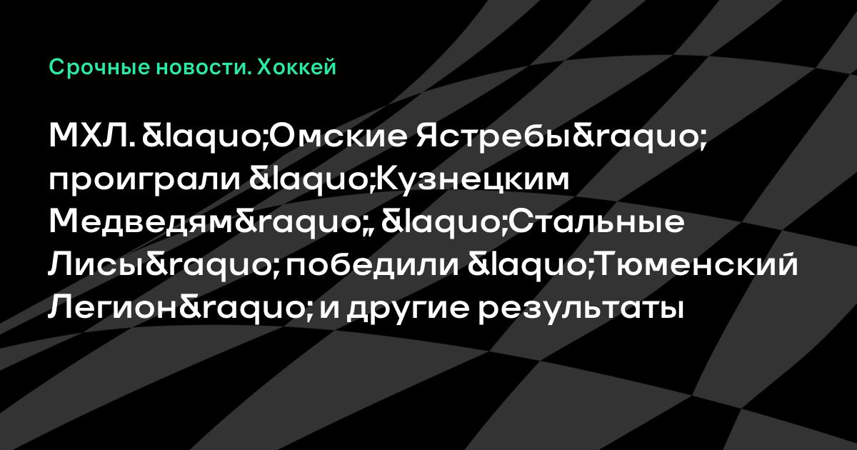 МХЛ. «Омские Ястребы» проиграли «Кузнецким Медведям», «Стальные Лисы» победили «Тюменский Легион» и другие результаты