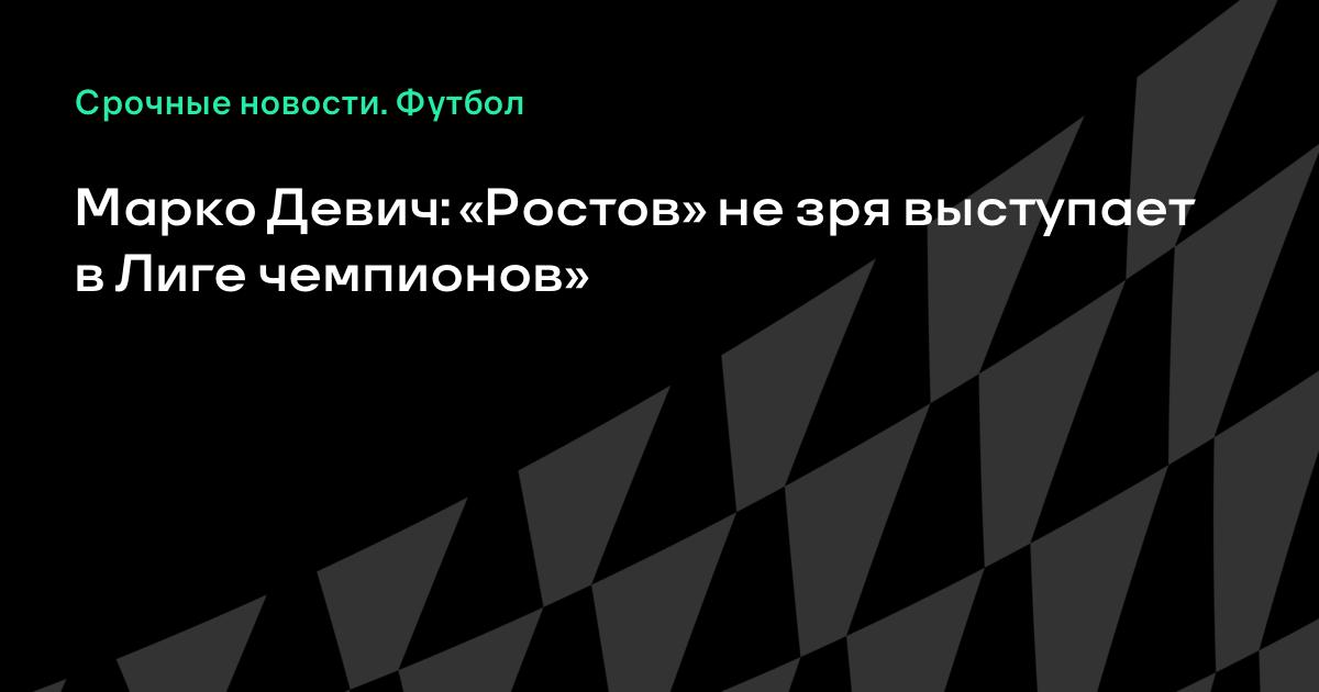 Марко Девич: «Ростов» не зря выступает в Лиге чемпионов»