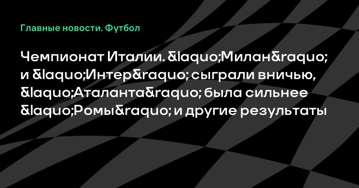 Чемпионат Италии. «Милан» и «Интер» сыграли вничью, «Аталанта» была сильнее «Ромы» и другие результаты