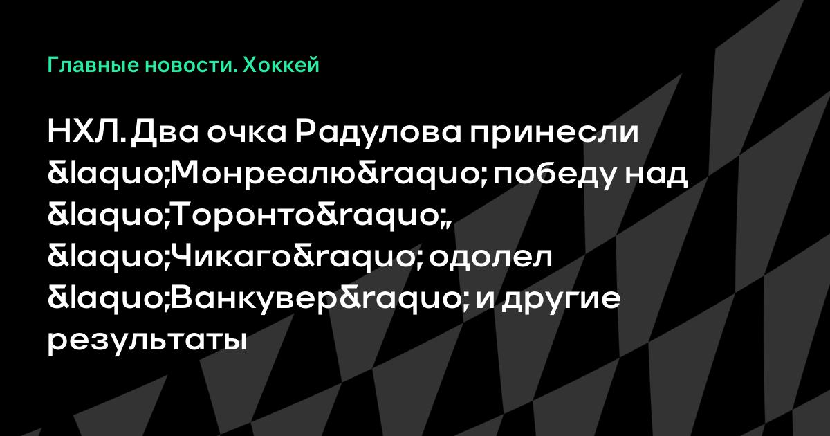 НХЛ. Два очка Радулова принесли «Монреалю» победу над «Торонто», «Чикаго» одолел «Ванкувер» и другие результаты