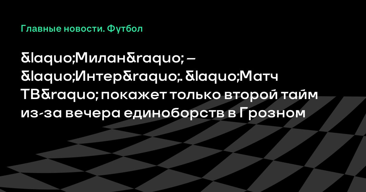 «Милан» – «Интер». «Матч ТВ» покажет только второй тайм из-за вечера единоборств в Грозном