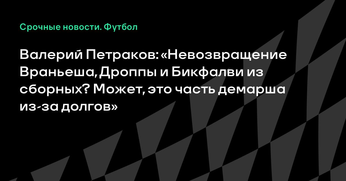 Валерий Петраков: «Невозвращение Враньеша, Дроппы и Бикфалви из сборных? Может, это часть демарша из-за долгов»