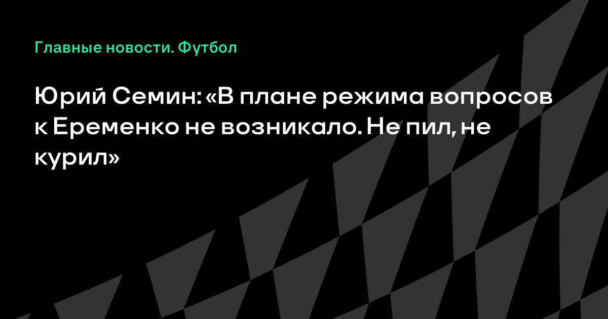Юрий Семин: «В плане режима вопросов к Еременко не возникало. Не пил, не курил»