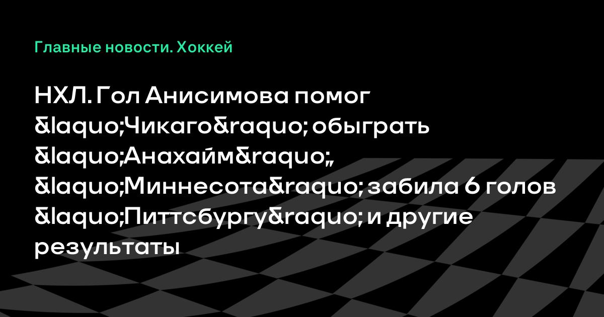 НХЛ. Гол Анисимова помог «Чикаго» обыграть «Анахайм», «Миннесота» забила 6 голов «Питтсбургу» и другие результаты