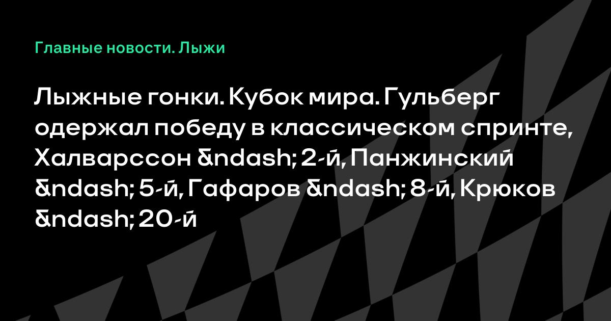 Лыжные гонки. Кубок мира. Гульберг одержал победу в классическом спринте, Халварссон – 2-й, Панжинский – 5-й, Гафаров – 8-й, Крюков – 20-й