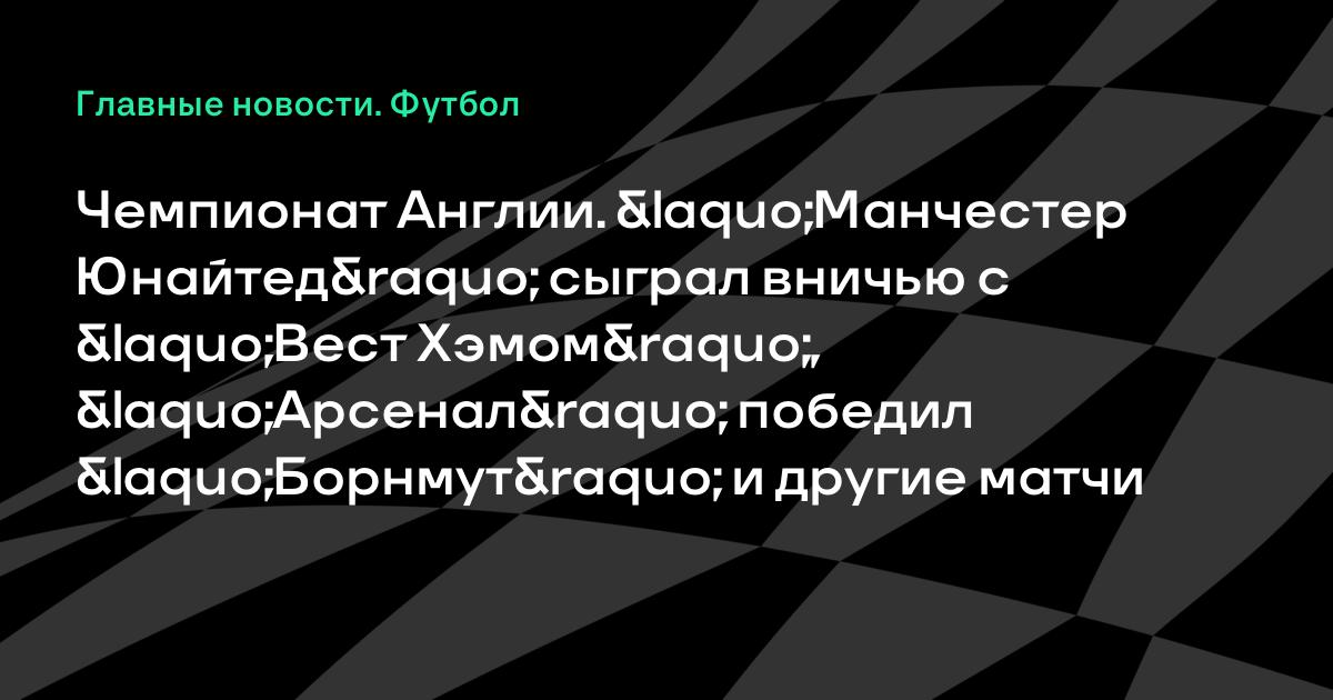 Чемпионат Англии. «Манчестер Юнайтед» сыграл вничью с «Вест Хэмом», «Арсенал» победил «Борнмут» и другие матчи