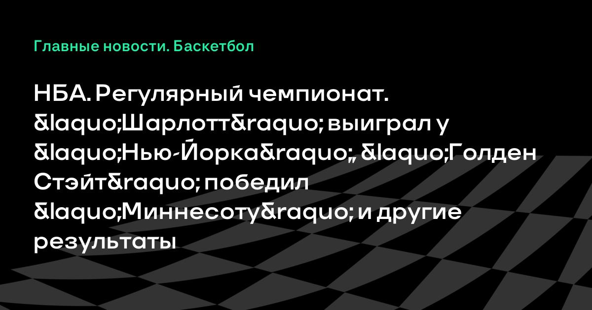 НБА. Регулярный чемпионат. «Шарлотт» выиграл у «Нью-Йорка», «Голден Стэйт» победил «Миннесоту» и другие результаты