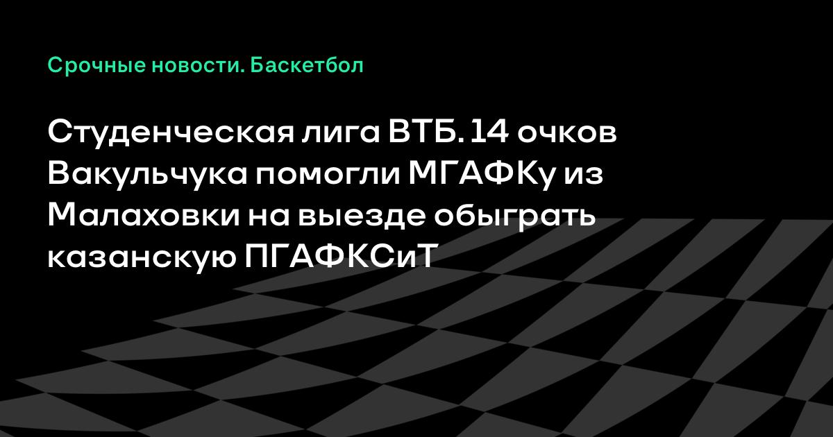 Студенческая лига ВТБ. 14 очков Вакульчука помогли МГАФКу из Малаховки на выезде обыграть казанскую ПГАФКСиТ