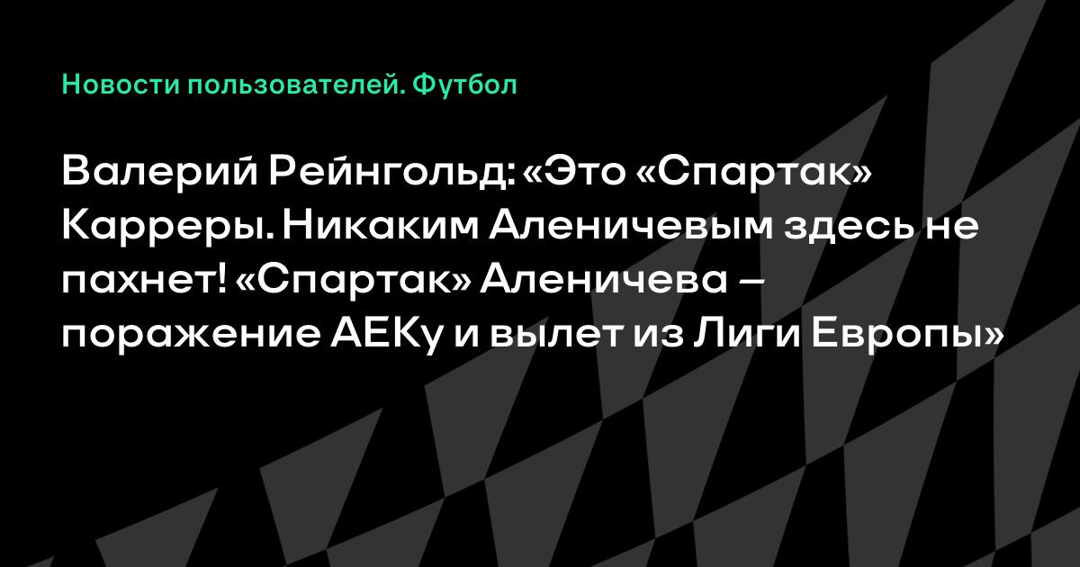 Валерий Рейнгольд: «Это «Спартак» Карреры. Никаким Аленичевым здесь не пахнет! «Спартак» Аленичева – поражение АЕКу и вылет из Лиги Европы»