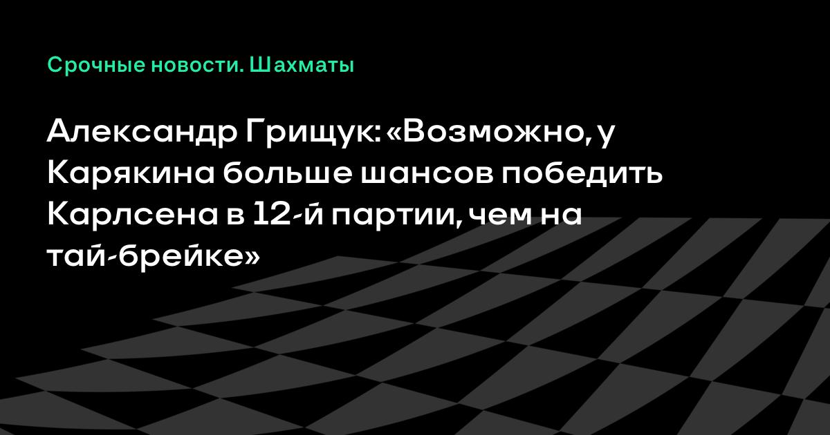 Российский гроссмейстер Александр Грищук поделился ожиданиями от 12-й партии матча на первенство мира между россиянином Сергеем Карякиным и норвежцем Магнусом Карлсеном.