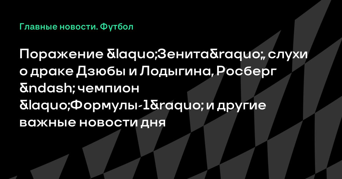 Поражение «Зенита», слухи о драке Дзюбы и Лодыгина, Росберг – чемпион «Формулы-1» и другие важные новости дня