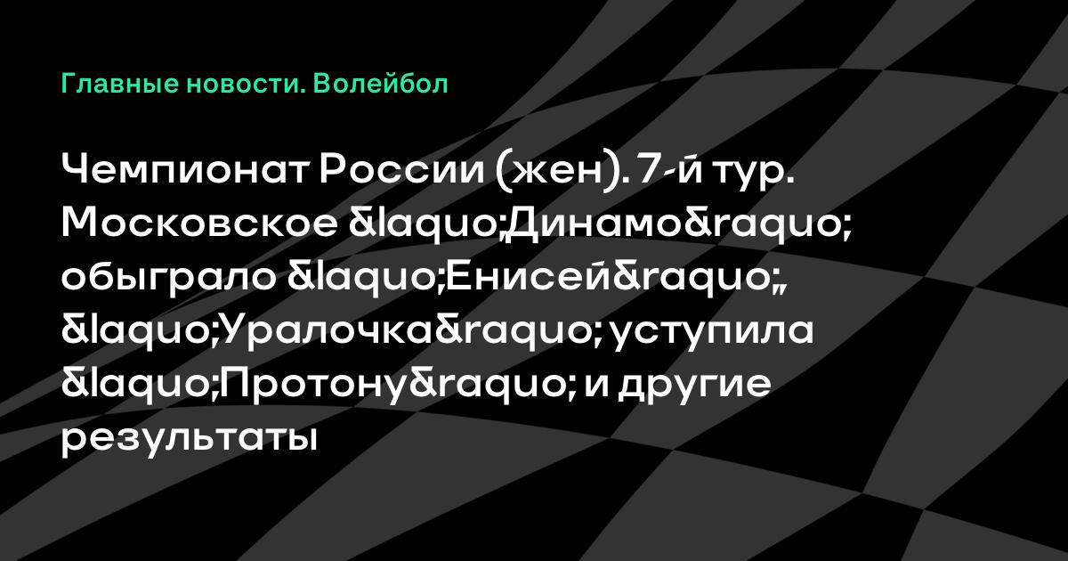 Чемпионат России (жен). 7-й тур. Московское «Динамо» обыграло «Енисей», «Уралочка» уступила «Протону» и другие результаты