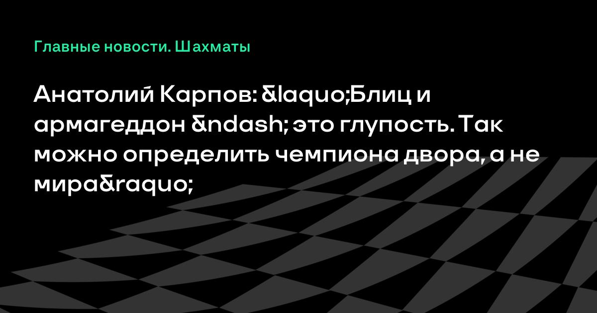 Анатолий Карпов: «Блиц и армагеддон – это глупость. Так можно определить чемпиона двора, а не мира»