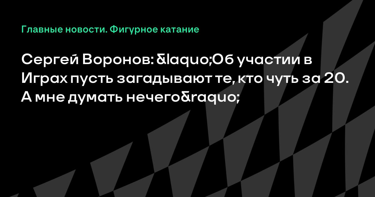 Загадывать о результате глупо, как минимум. Он важен для нас всех, а мое дело кататься, и в удовольствие. А что касается отбора на чемпионат Европы, скажу только, что я обожаю представлять свою страну и испытываю огромную гордость, когда представляю свой флаг на международной арене – у нас великая страна с великой историей и великими людьми, которых я хочу быть достоин», – рассказал Воронов.