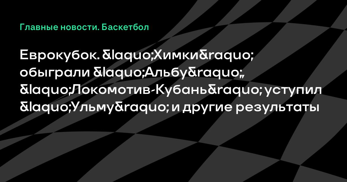 Еврокубок. «Химки» обыграли «Альбу», «Локомотив-Кубань» уступил «Ульму» и другие результаты