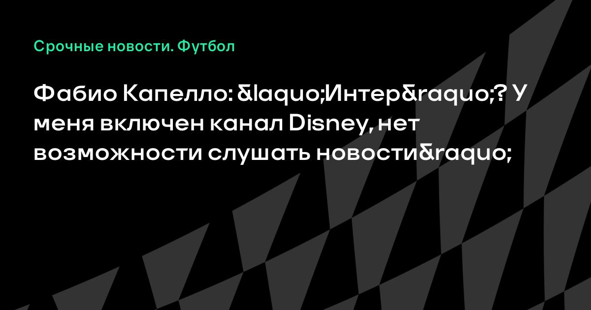 «Интер»? Сейчас я нахожусь в отпуске в Марбелье. Провожу время на солнце и в море со своими внуками – расслабляюсь и не знаю, о чем вы говорите. У меня постоянно включен канал Disney, нет возможности слушать новости», – приводит слова Капелло La Gazzetta dello Sport.
