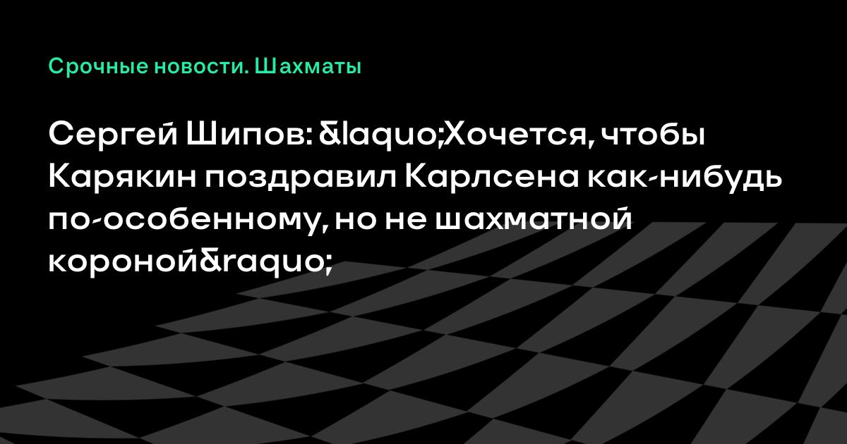 Сергей Шипов: «Хочется, чтобы Карякин поздравил Карлсена как-нибудь по-особенному, но не шахматной короной»