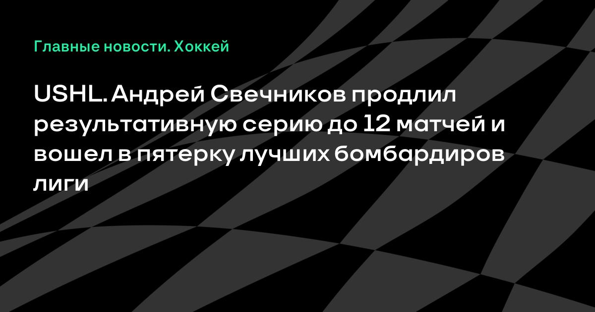 Форвард юниорской сборной России (U-17) Андрей Свечников продлил результативную серию в составе «Маскегона» до 12 матчей, в которых набрал 22 (10+12) очка, и вошел в пятерку лучших бомбардиров лиги.