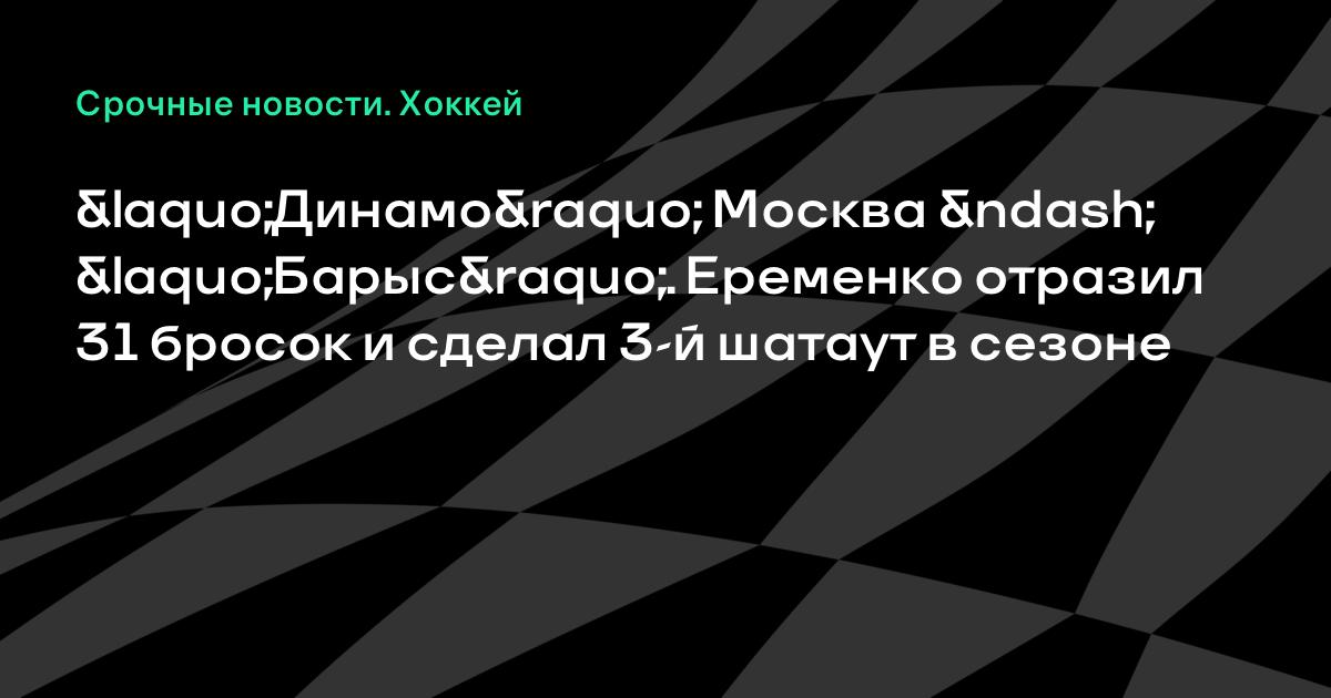 Голкипер «Динамо» Александр Еременко сделал шатаут в матче регулярного чемпионата КХЛ против «Барыса» (3:0).