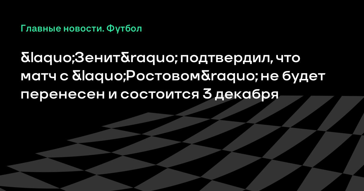 «Зенит» подтвердил, что матч с «Ростовом» не будет перенесен и состоится 3 декабря