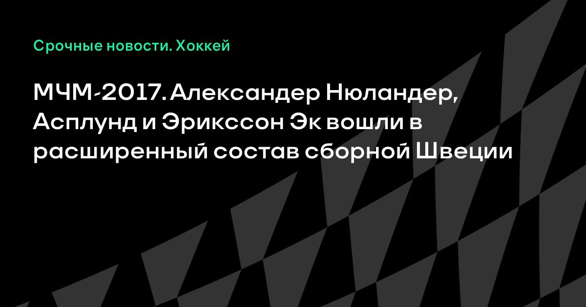 МЧМ-2017. Александер Нюландер, Асплунд и Эрикссон Эк вошли в расширенный состав сборной Швеции