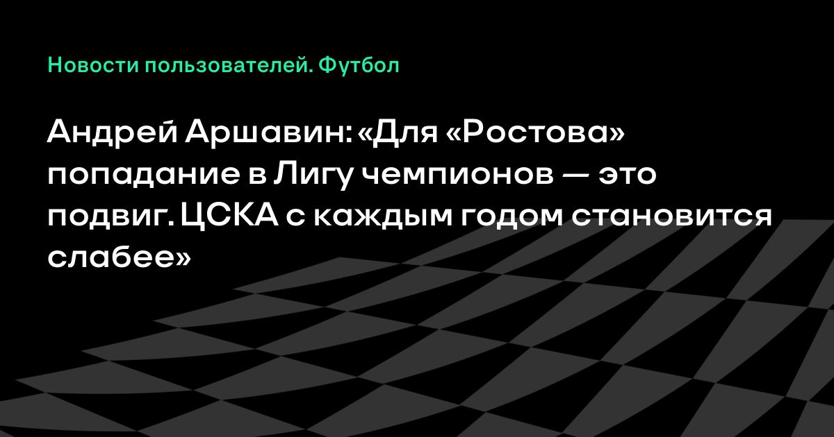 Андрей Аршавин: «Для «Ростова» попадание в Лигу чемпионов — это подвиг. ЦСКА с каждым годом становится слабее»