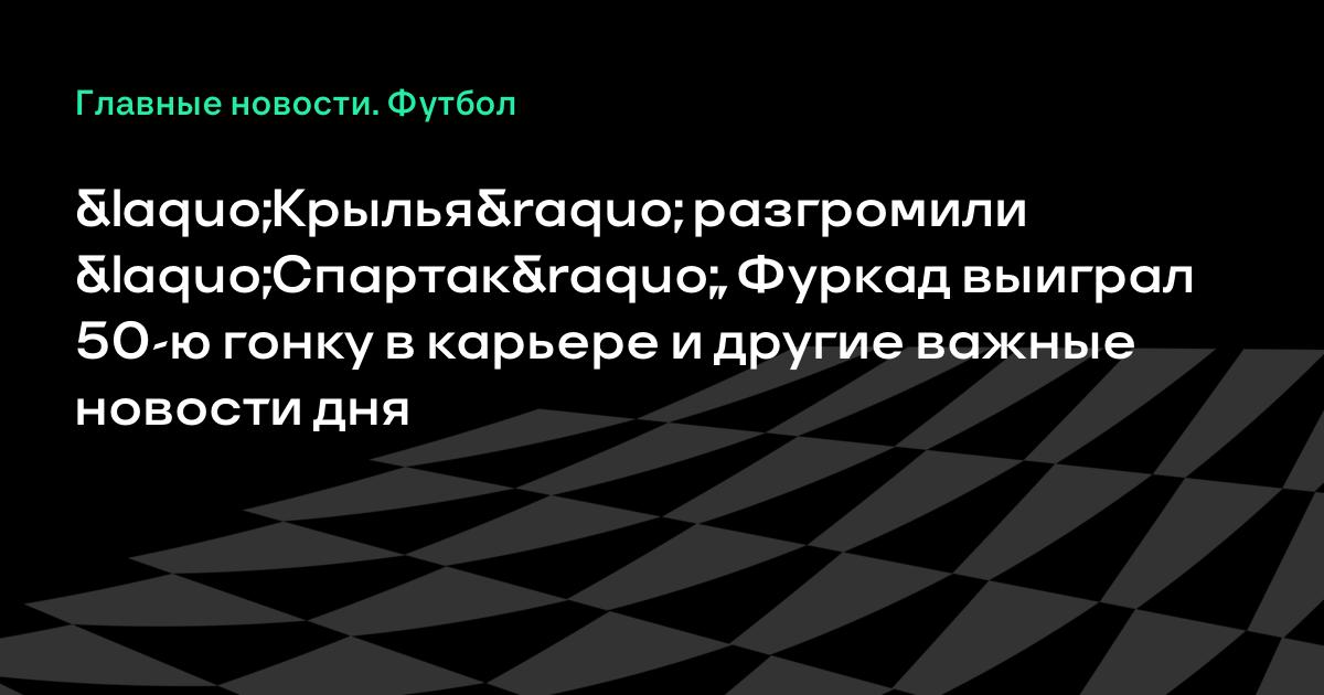 «Крылья» разгромили «Спартак», Фуркад выиграл 50-ю гонку в карьере и другие важные новости дня