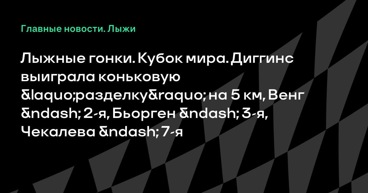 Лыжные гонки. Кубок мира. Диггинс выиграла коньковую «разделку» на 5 км, Венг – 2-я, Бьорген – 3-я, Чекалева – 7-я