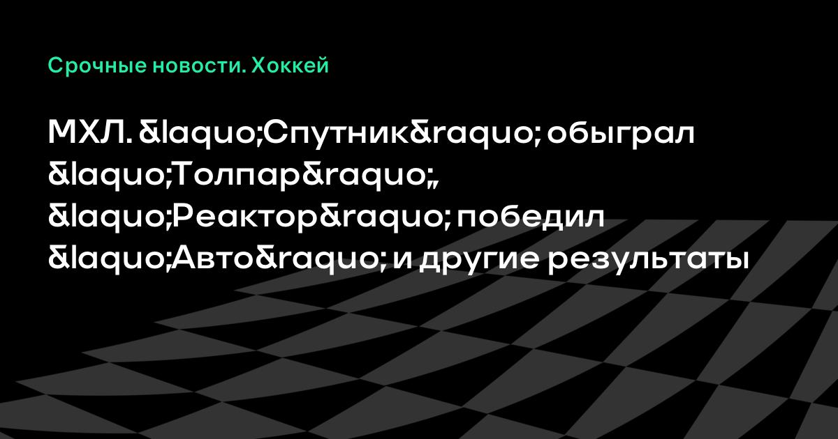МХЛ. «Спутник» обыграл «Толпар», «Реактор» победил «Авто» и другие результаты