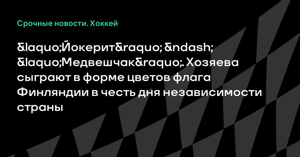«Йокерит» – «Медвешчак». Хозяева сыграют в форме цветов флага Финляндии в честь дня независимости страны