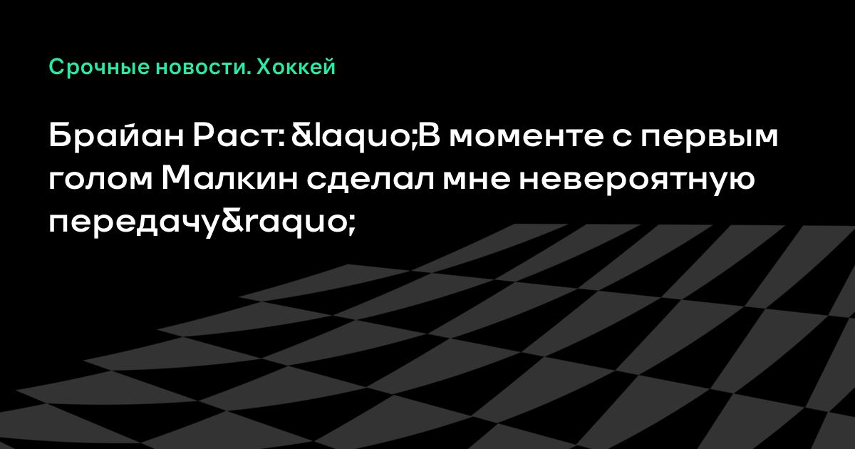 Брайан Раст: «В моменте с первым голом Малкин сделал мне невероятную передачу»