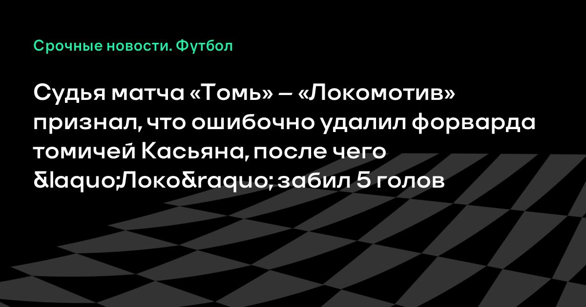 Судья матча «Томь» – «Локомотив» признал, что ошибочно удалил форварда томичей Касьяна, после чего «Локо» забил 5 голов