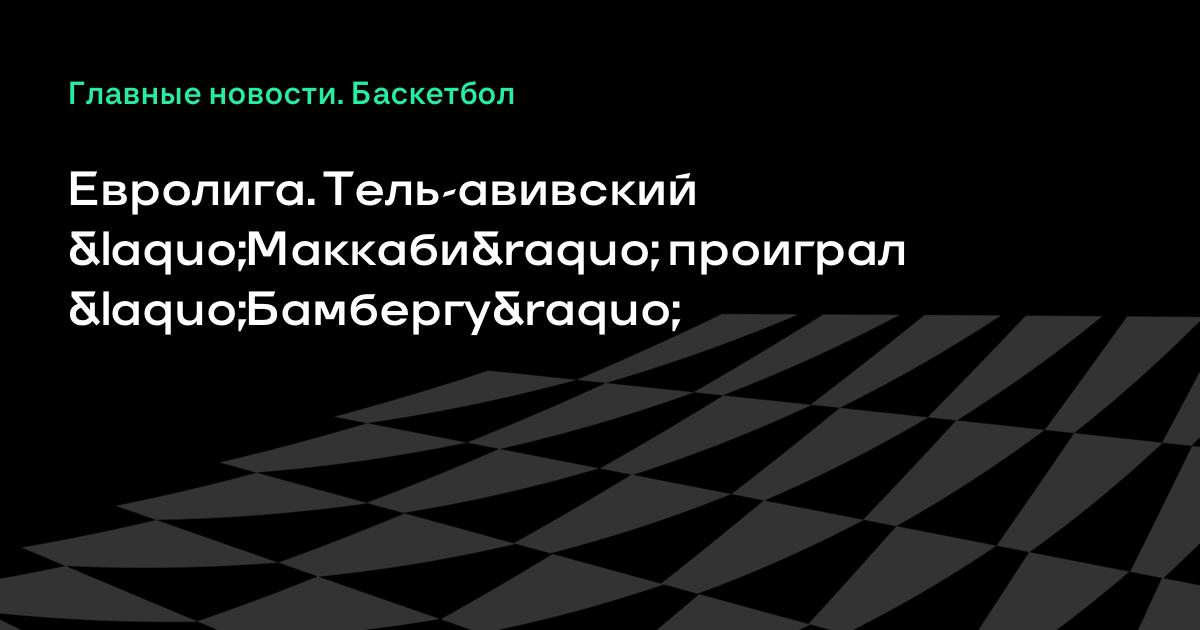 Евролига. Тель-авивский «Маккаби» проиграл «Бамбергу»