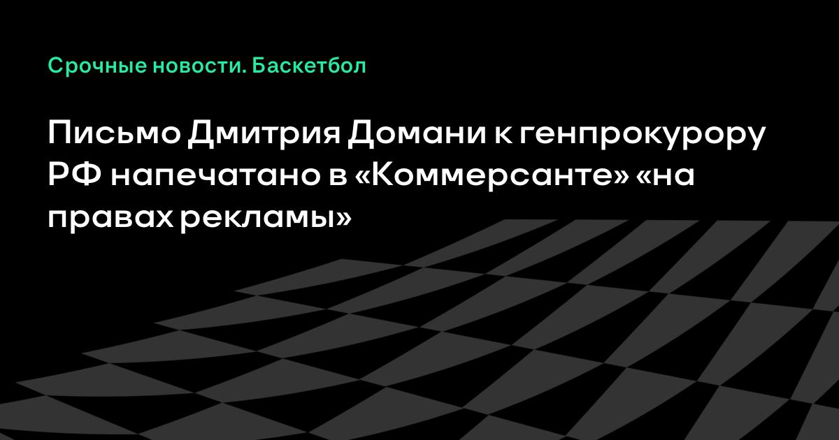 Письмо Дмитрия Домани к генпрокурору РФ напечатано в «Коммерсанте» «на правах рекламы»