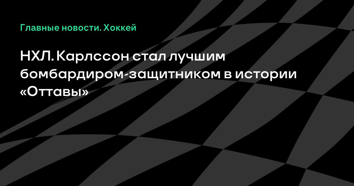 НХЛ. Карлссон стал лучшим бомбардиром-защитником в истории «Оттавы»