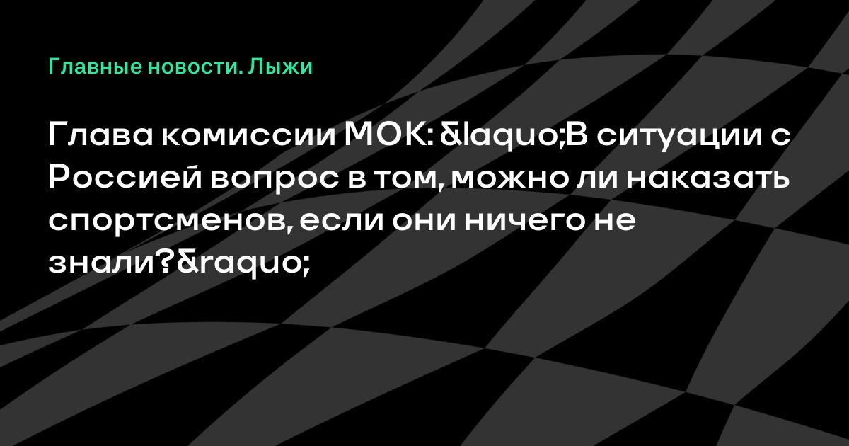 Глава комиссии МОК: «В ситуации с Россией вопрос в том, можно ли наказать спортсменов, если они ничего не знали?»