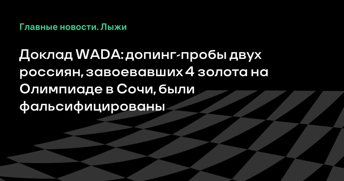Доклад WADA: допинг-пробы двух россиян, завоевавших 4 золота на Олимпиаде в Сочи, были фальсифицированы