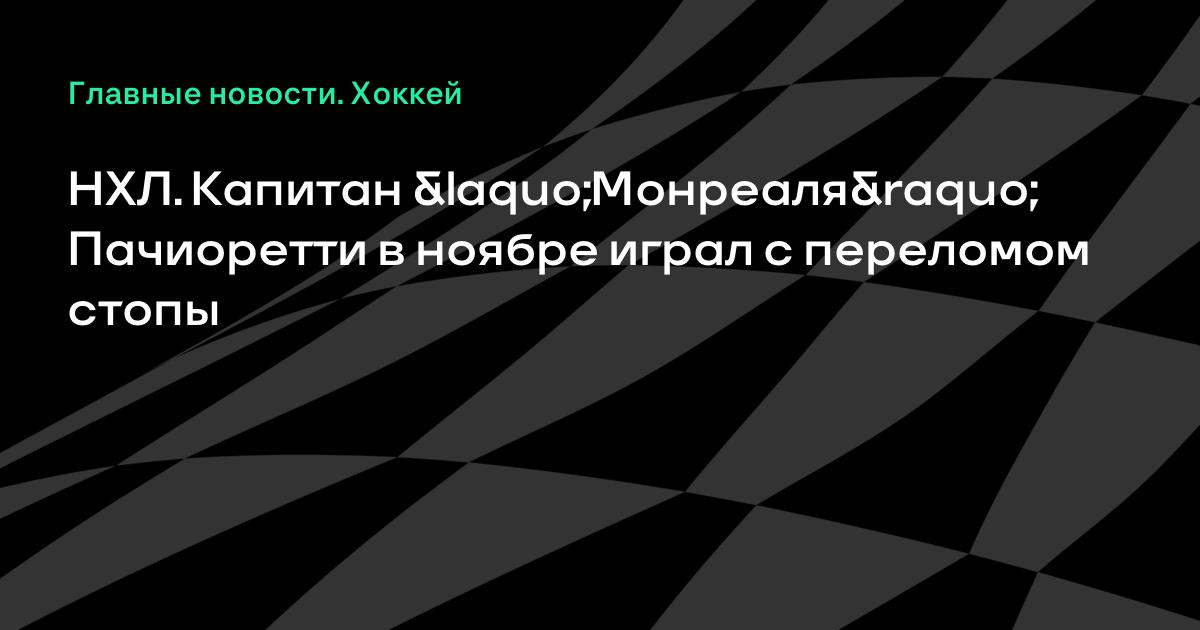 Капитан «Монреаля» Макс Пачиоретти в ноябре играл с переломом стопы, сообщает журналист Sportsnet Эрик Энджелс.