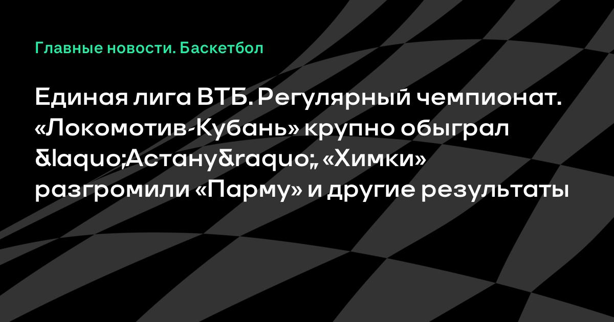 Единая лига ВТБ. Регулярный чемпионат. «Локомотив-Кубань» крупно обыграл «Астану», «Химки» разгромили «Парму» и другие результаты