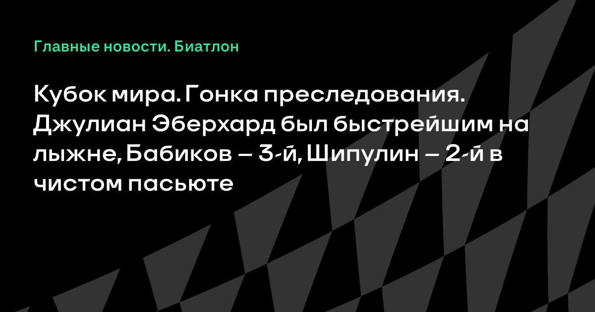 Кубок мира. Гонка преследования. Джулиан Эберхард был быстрейшим на лыжне, Бабиков – 3-й, Шипулин – 2-й в чистом пасьюте